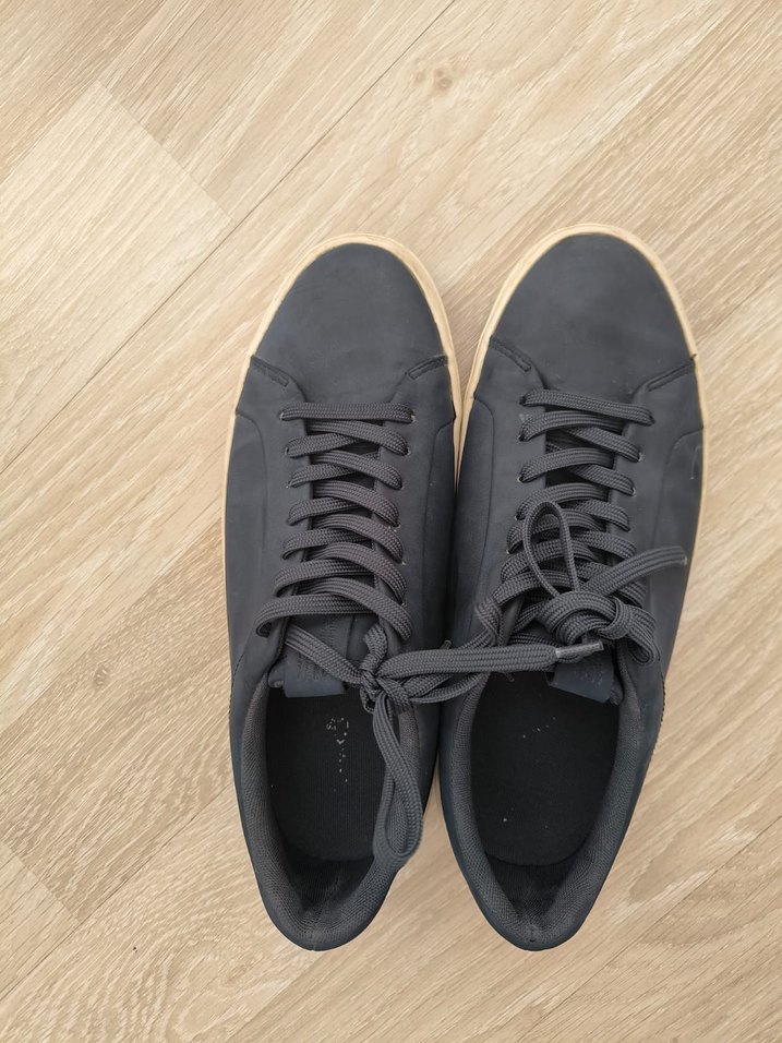 Gri minimalist erkek spor ayakkabısı, kauçuk tabanlıdır. Sokak stili ve günlük rahat kullanım için uygun, zahmetsiz şıklık sunar.