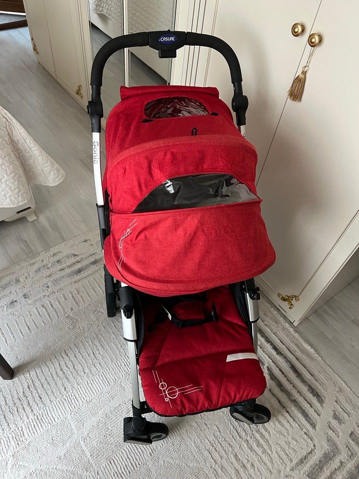 Casual sonic marka kırmızı renkte çift yön kullanımı mevcut az kullanılmış temiz sağlam bebek arabası