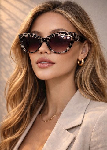 Cat - Eye Leopar Desenli Güneş Gözlüğü