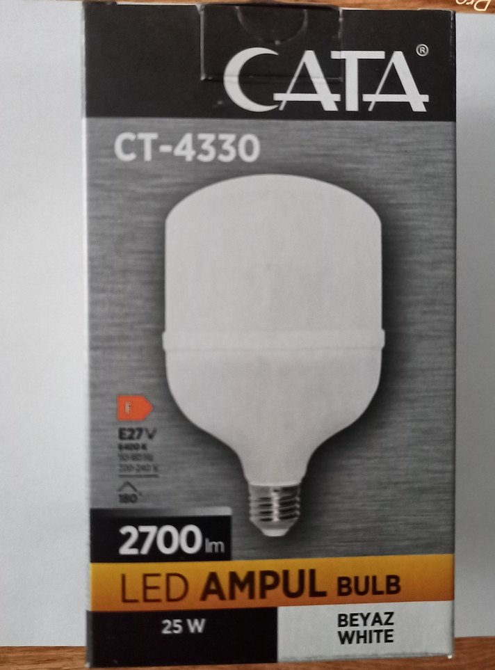 CATA CT-4330 LED ampul, 2700 lümen parlaklık ve beyaz ışık sunar. 25W gücünde ve E27 duy tipindedir.