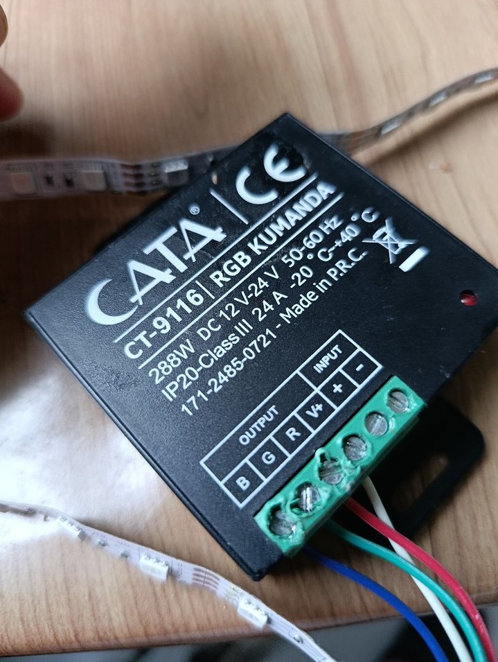 CATA CT-91161 RGB kumanda 12V-24V giriş, 288W güç ve IP20 koruma sınıfına sahiptir. P.R.C'de üretilmiştir ve RGB ışık kontrolü içindir. ️urun çalışmıyor yeni nedense tamir edebilen varsa buyursun
