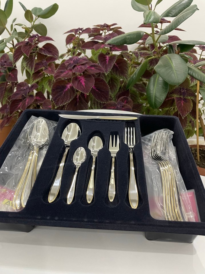 Alman malı çatal kaşık bıçak takımı Almanyanın en eski züccaciye şirketlerinden biridir dünyanın önde Gelen kaşık çatal bıçak kevgir kepçe spatula yaratıcı ürünler üreticisi ve tedarikçler arasındadır alman ürünüdür 18/10 paslanmaz çelikten üretim sağlanmaktadır renk solması veya kararması olmaz makinede yıkanabilir ürün içeriği 6 adet yemek kaşığı 6 adet yemek çatalı 6 adet tatlı kaşığı 6 adet tatlı çatalı 6 adet çay kaşığı 6 adet yemek bıçağı toplam 36 parçadan oluşmaktadır kevgir kepçe spatula ayrı satılıyor almak isterseniz dolabıma bakabilirsiniz silikonlu poşetinde gönderim yapılır:))