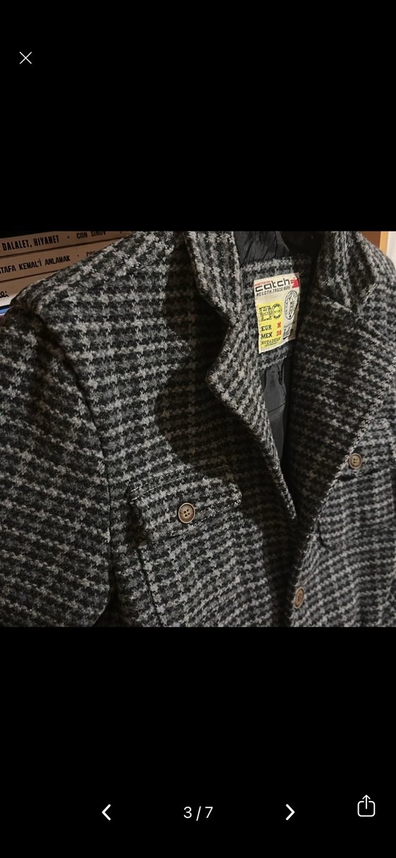 Catch in kalın tok ağır bir ceketidir çok kalitelidir retro havası vardır az kullanıldı en 48 boy 69 M beden ama S gibidir ölçüleri mevcut