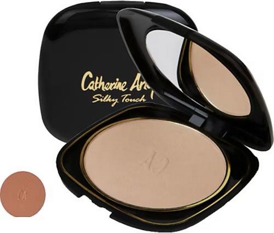 Catherine Ar Silky Touch parlatıcı bej renkte, pürüzsüz kapatıcılık sağlayan kompakt pudra, içinde ayna bulunur. ✨