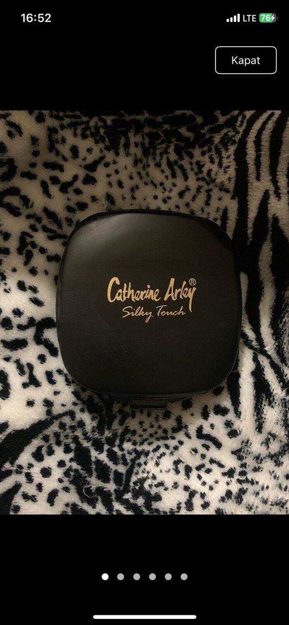 Catherine Arley Silky Touch pudra, koyu bej tonunda, doğal ve pürüzsüz bir bitiş sağlar. 5.5 numara. Az kullanıldı. Süngeri yok. Aynalı.