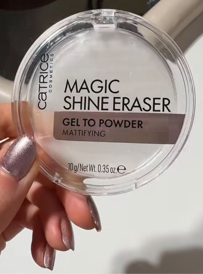 Catrice Magic Shine Eraser, parlaklığı kontrol eden matlaştırıcı jelden pudraya dönüşen bej renkte bir pudradır. 10g ağırlığındadır. Cilde hem mat bir bitiş veriyor hemde blur efekti yaratarak gözenekleri gizliyor. Klasik pudralar gibi toz yapıda değil, jel formunda✨