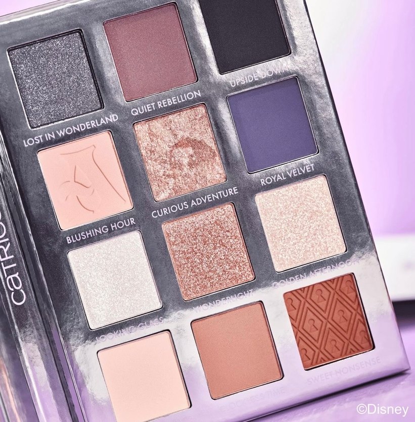 Mor ve gri tonlarında, mat ve ışıltılı dokulara sahip Royal Velvet ve Wonderland gibi renkler içeren göz farı paleti.