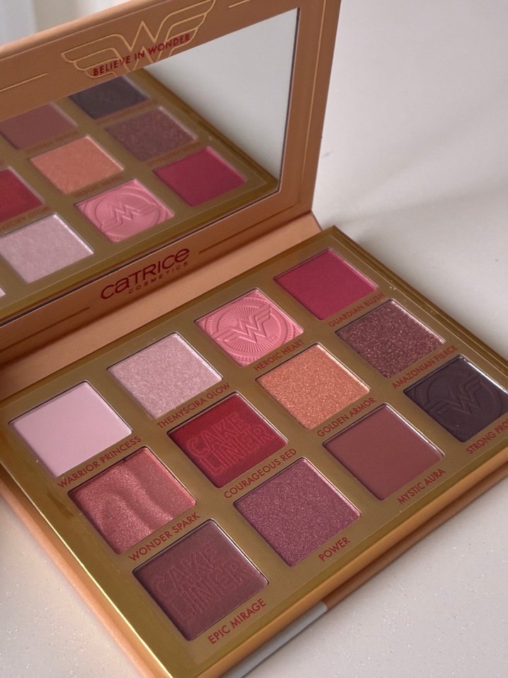 Catrice far paleti, mat ve ışıltılı camel ile pembe tonlarında canlı renkler sunar. Aynasıyla kolay kullanım sağlar.