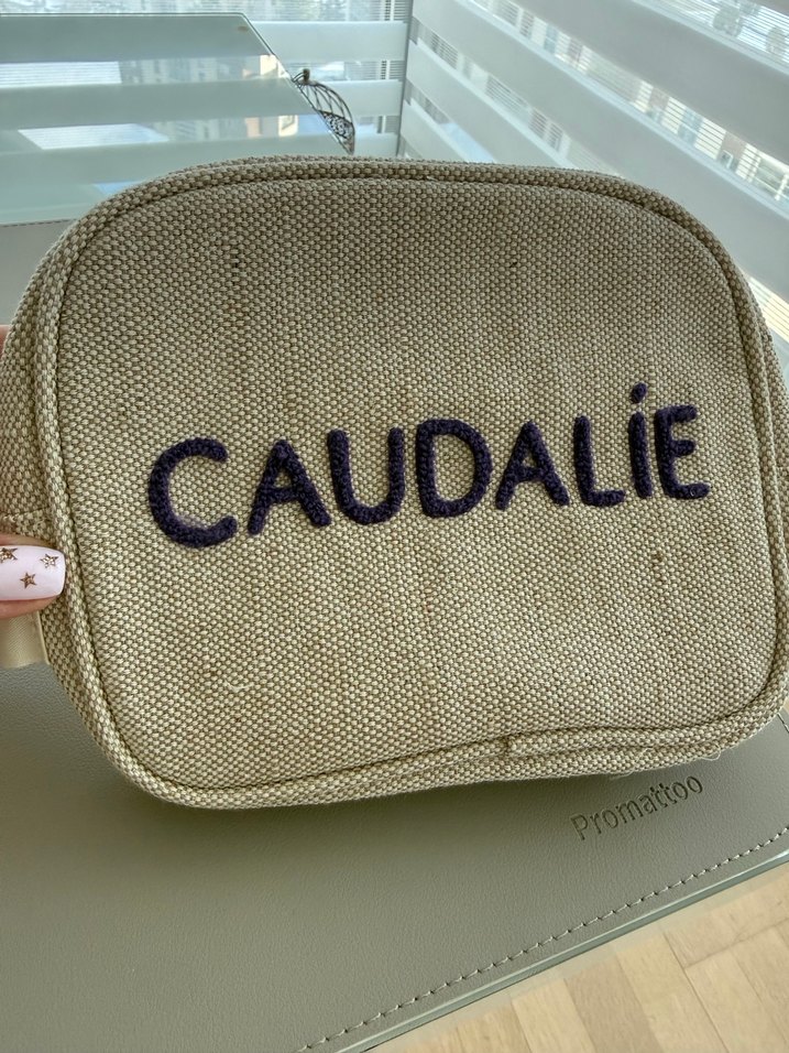 Renkli ve doğal dokulu Caudalie makyaj çantası. Tam ortasından ölçüldüğünde yaklaşık 20 cm genişliğe ve 15 cm yüksekliğe sahiptir. Hiç kullanılmamıştır, defosuzdur. Günlük makyaj malzemeleri veya küçük kişisel eşyalar için ideal bir boyuttadır. Hem şık hem kullanışlı bir makyaj çantası arayanlar için uygundur.
