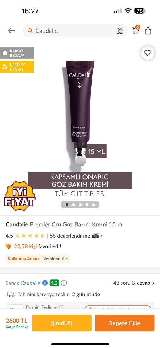 Sadece iki sefer kullandım bende alerji yaptığı için satıyorum Orjinal ürün lansmanında aldım sadece açtığım için bu kadar uyguna koyuyorum