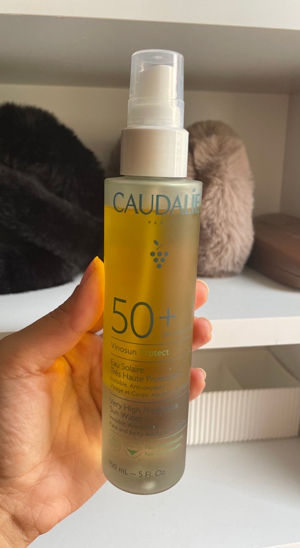 Caudalie SPF 50+ güneş koruyucu sprey, yüz ve vücut için yüksek koruma sağlar ve antioksidan özellikler içerir. 150 ml sprey şişede sunulur.