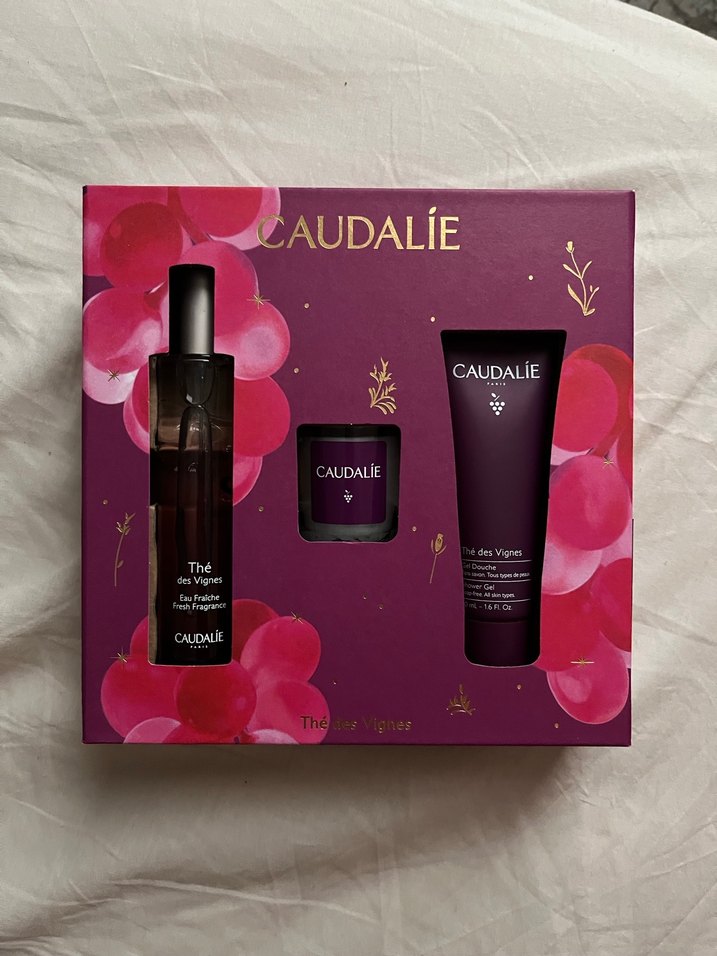 Caudalie Thé des Vignes kadın parfümü, duş jeli ve kokulu mumdan oluşan settir. Hoş bir kokusu var kutusu açılmamış ambalajlıdır. 50 ml Ambalajında bile kokusu hissediliyor.eczaneden alındı.