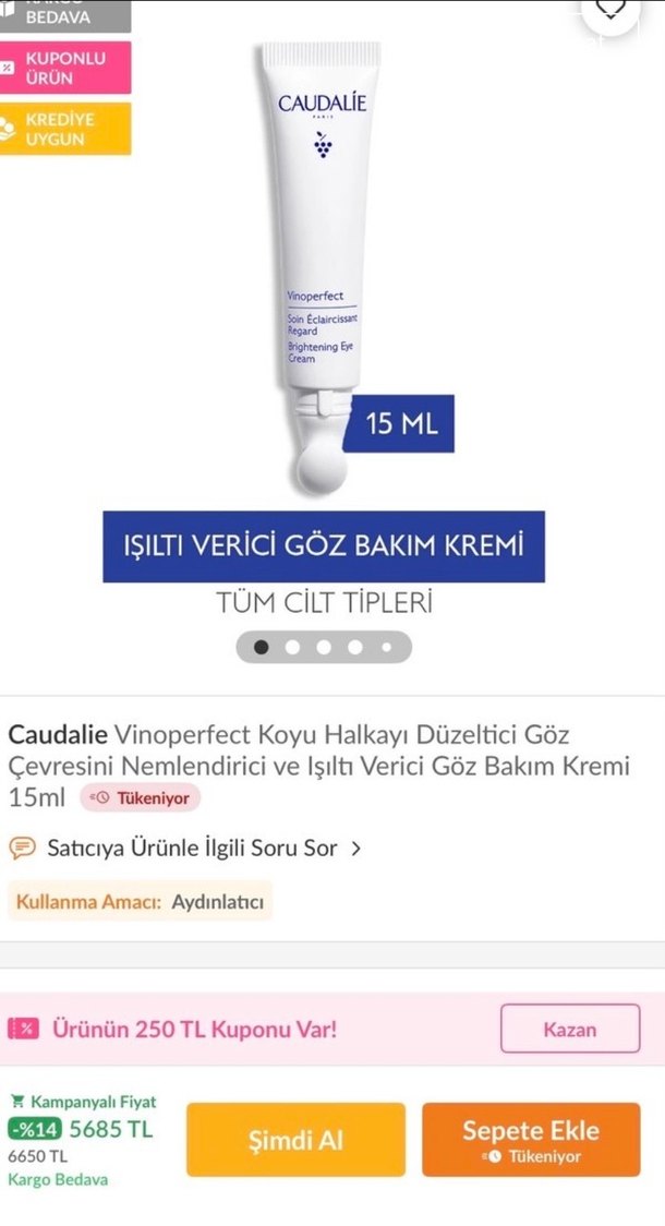 Caudalie Vinoperfect koyu halkayı azaltan, göz çevresini nemlendiren ve ışıltı veren 5 ml den 2 adet toplam 10 ml göz bakım kremidir. Tüm cilt tiplerine uygundur. ✨