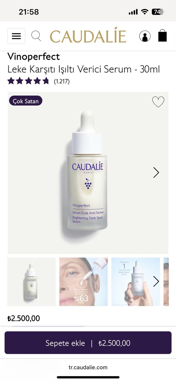 Caudalie Vinoperfect Leke Karşıtı Işıltı Verici Serum 30ml, koyu lekeleri hedefler ve cilde parlaklık kazandırır. Orijinaldir çok az kullandım benim cildimle anlaşamadı fakat çok beğenilen ve çok satan bir serum #caudalie #serum