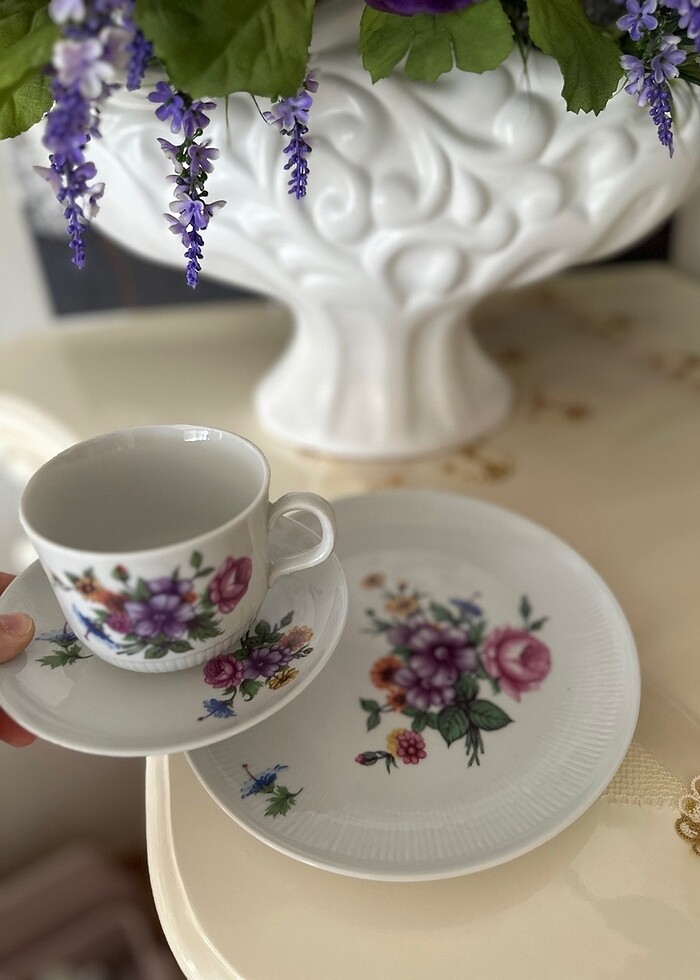 Kahla damgalı çok temiz çay fincanı ve pasta tabağı