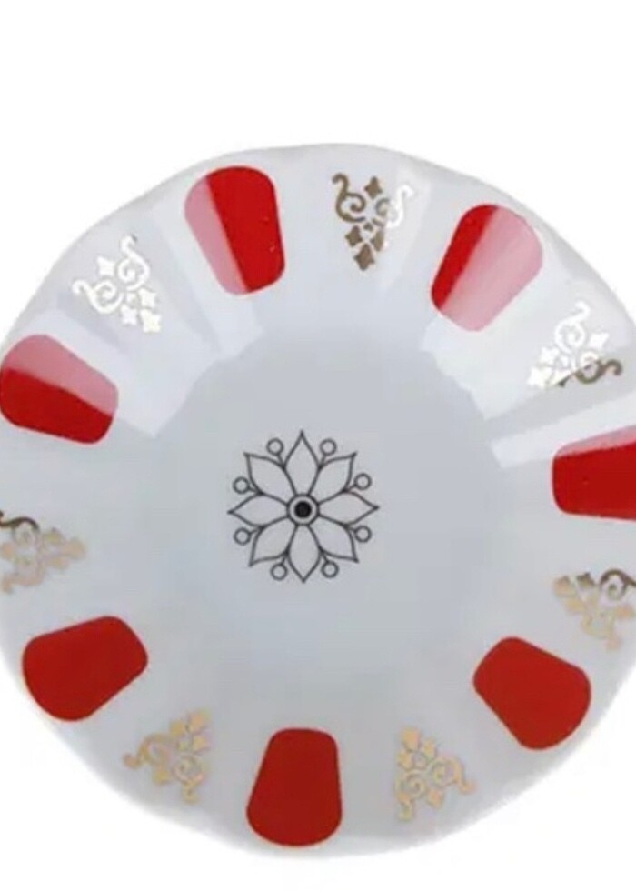 - Sır Üstü Altın/Platin Yaldızlı Tekniği İle Üretilmiştir - Çay tabağının çapı 10 cm olup yüksekliğiyse 2.5 santimdir - Beyaz üzerine kırmızı boyası olan çay tabağının içerisi desenlerle süslüdür - Klasik tip çay tabağı bulaşık makinesinde yıkanabilir