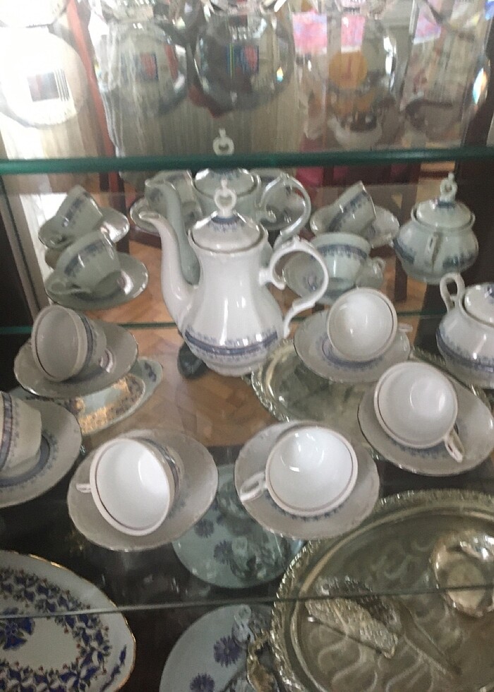 6 afet çay fincanı 6 tabağı bir şekerlik 1 de demlik takımı Romanya malı kırık çiziği yoktur