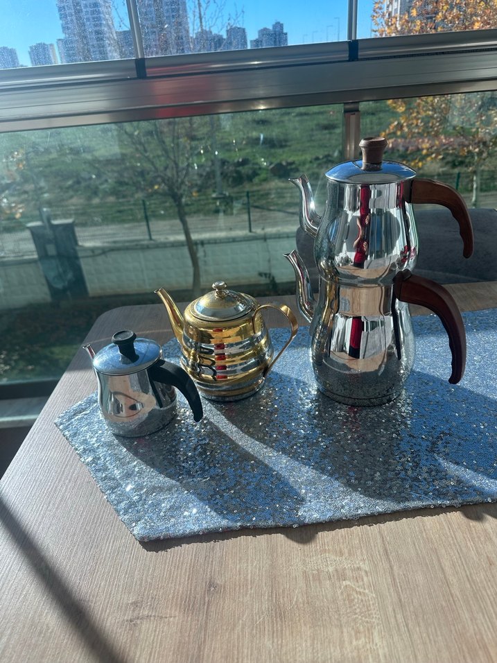 Eskilerden Gönen marka 18/10 paslanmaz çelik büyük boy çelik çaydanlık setidir. Küçükler dahil değil.Büyük çaydanlık yüksekliği 33 cm