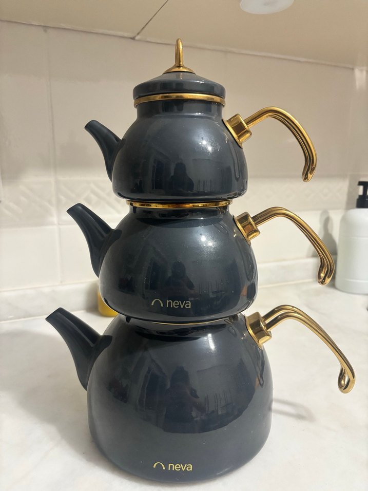 Neva Havana Antrasit 3 Katlı Emaye çaydanlık Takımı