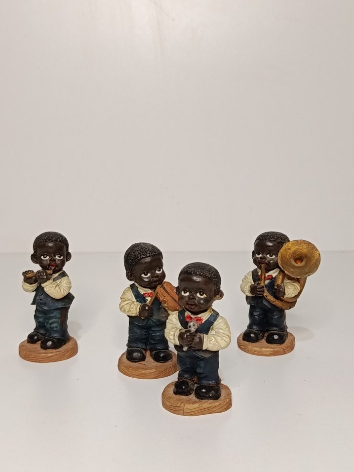 Farklı enstrümanlar çalan dört koyu kahverengi müzisyen figüründen oluşan set, her biri 6,5 cm