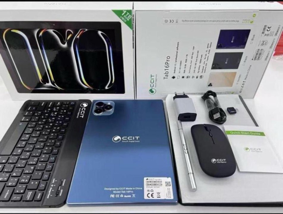 CCIT Tab16Pro, 1 TB hafıza 16 Ram.11.8 inç ekranlı mavi Android tablet, CE, FCC, OECIT ve CCIIT sertifikalarına sahip. Kalem, fare, şarj aleti ve klavye ile birlikte. Sim kart destekli.