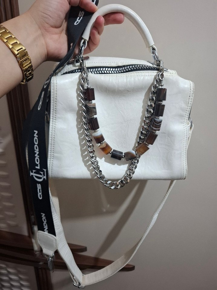 ÇÇS KIRIK BEYAZ Zincir Detaylı Deri Kadın Çanta