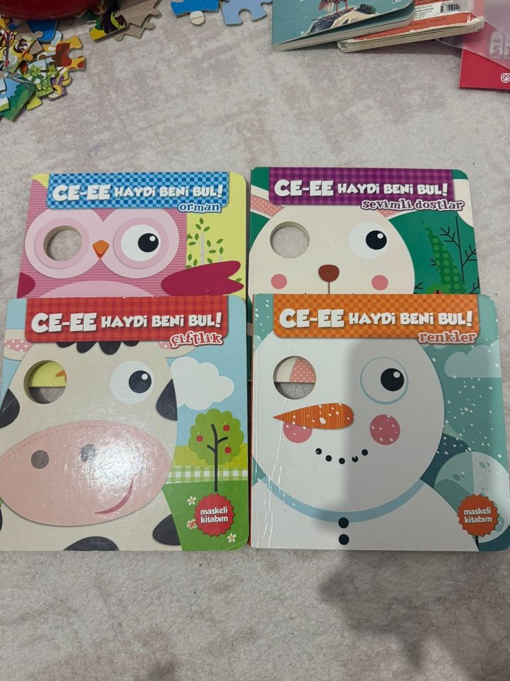 CE-EE Haydi Beni Bul! serisi, orman, sevgi, hayvanlar ve renkler temalı dört çocuk kitabından oluşur. Kitaplarda flamingo, ayı, inek ve kardan adam maskeleri bulunur.