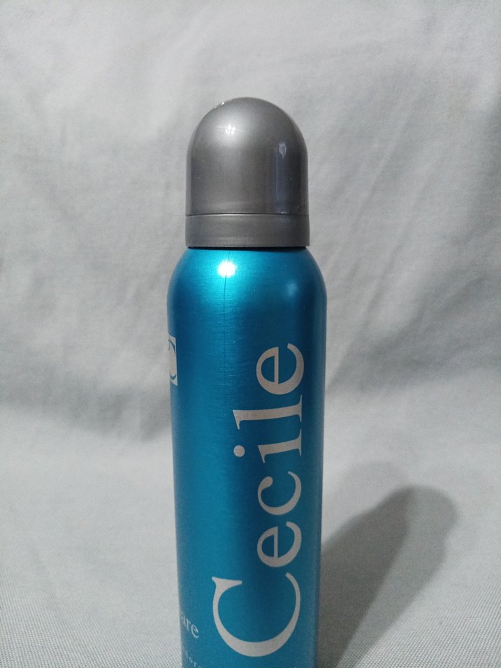 Mavi sprey şişede Cecile kadın deodorantı, etkili ferahlık ve koku koruması sağlar.