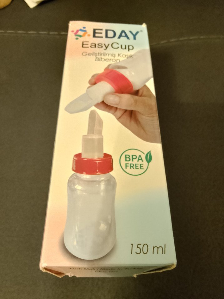 CEDAY EasyCup 150 ml kapasiteli, BPA'sız ve kullanımı kolay başlıklı renkli bebek biberonu. yeni sayılır denendi sadece
