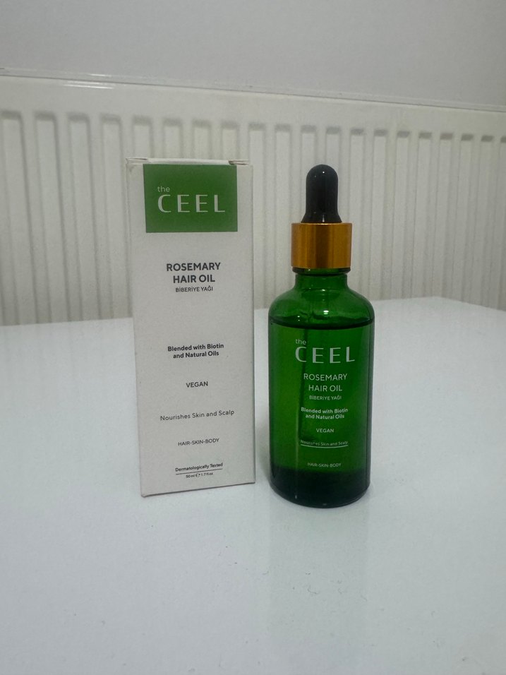 Ceel Biberiye Saç Bakım Yağı, biotin ve doğal yağlar ile saç ve saç derisini besler. Vegan ve sağlıklı saçlar için uygundur. Ceelden almıştım bir kere kullanıldı