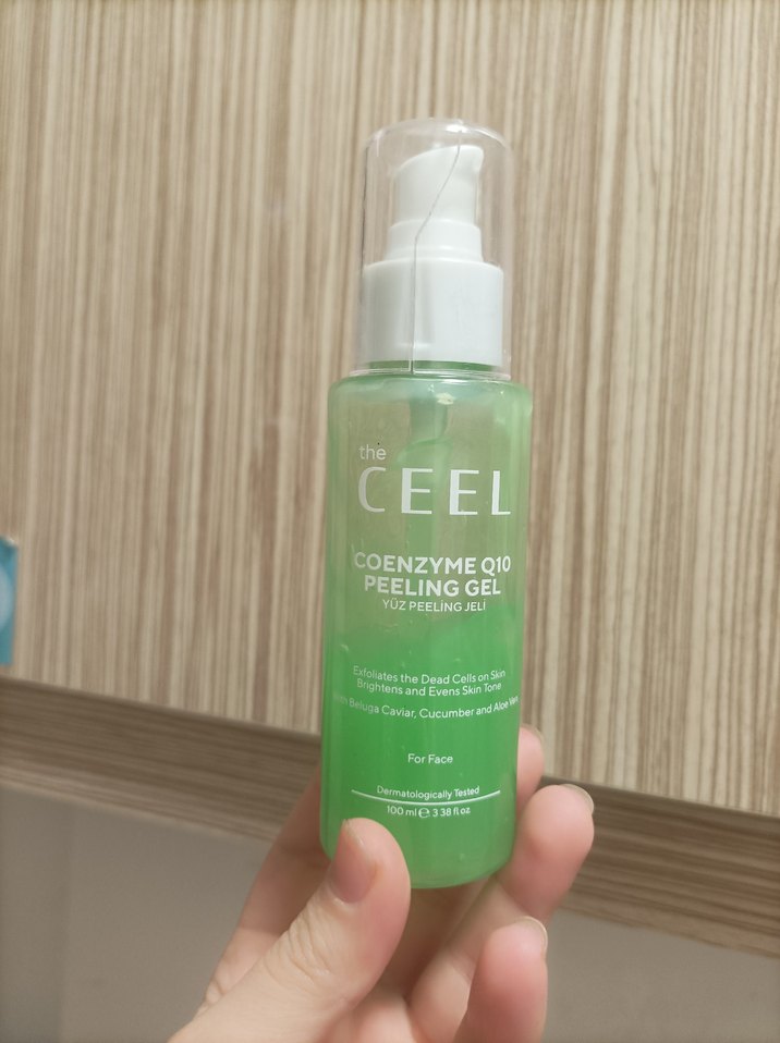 CEEL Coenzyme Q10 Peeling Jel, inci ölü deri hücrelerini temizler, cilt tonunu eşitler. İnci, havyar, salatalık ve aloe içerir. Yüz için. yarısı kullanildi