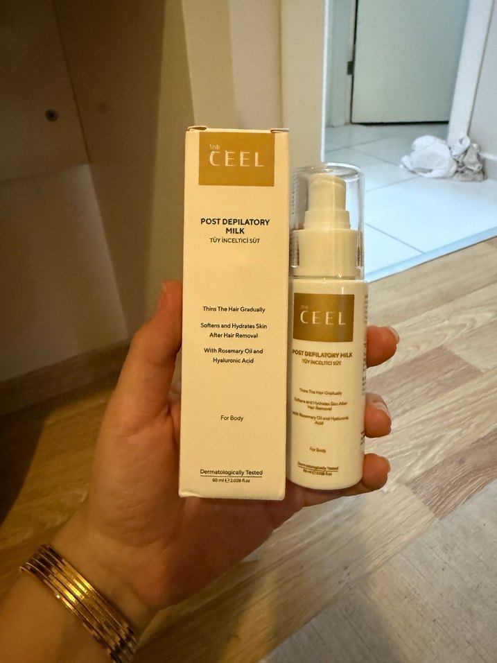 CEEL Tüy Dökücü Süt, tüyleri yavaşça azaltır, cildi yumuşatır ve nemlendirir. Biberiye yağı ve hyaluronik asit içerir. Dermatolojik olarak test edilmiştir.