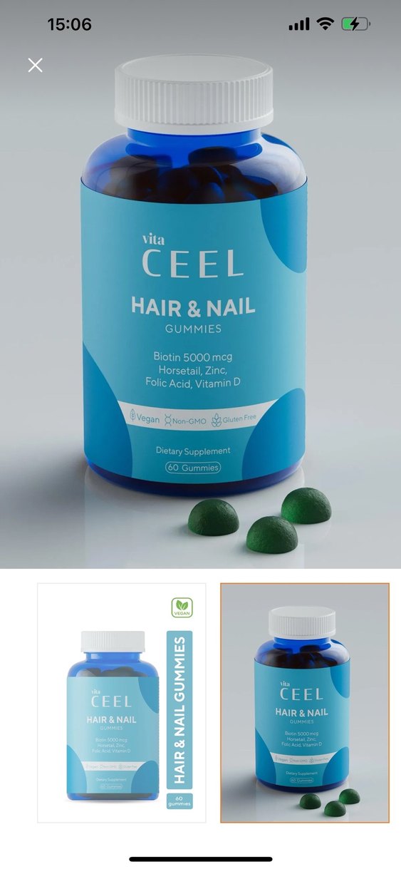 Ceel Vita Saç ve Tırnak Gummies, 5000 mcg biotin, at kuyruğu, çinko, folik asit ve D vitamini içerir. Vegan, glutensiz ve GDO'suz takviyelerdir.