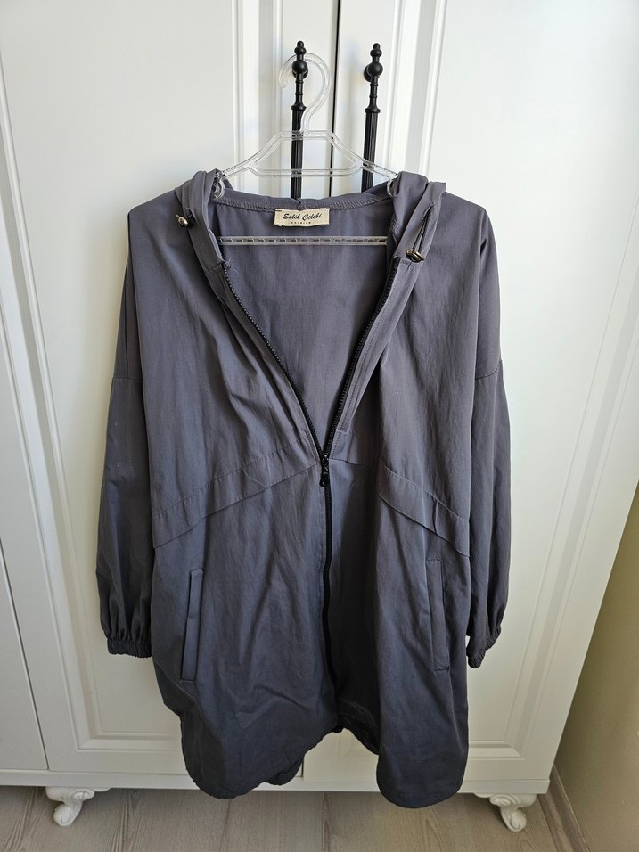 bol kesim midi uzunlukta stsndart beden ceket. ürün çok kullanılmamıştır ancak kolunda fotoprtski gibi deformasyon olup giyildiğinde farkedilmenektedir.