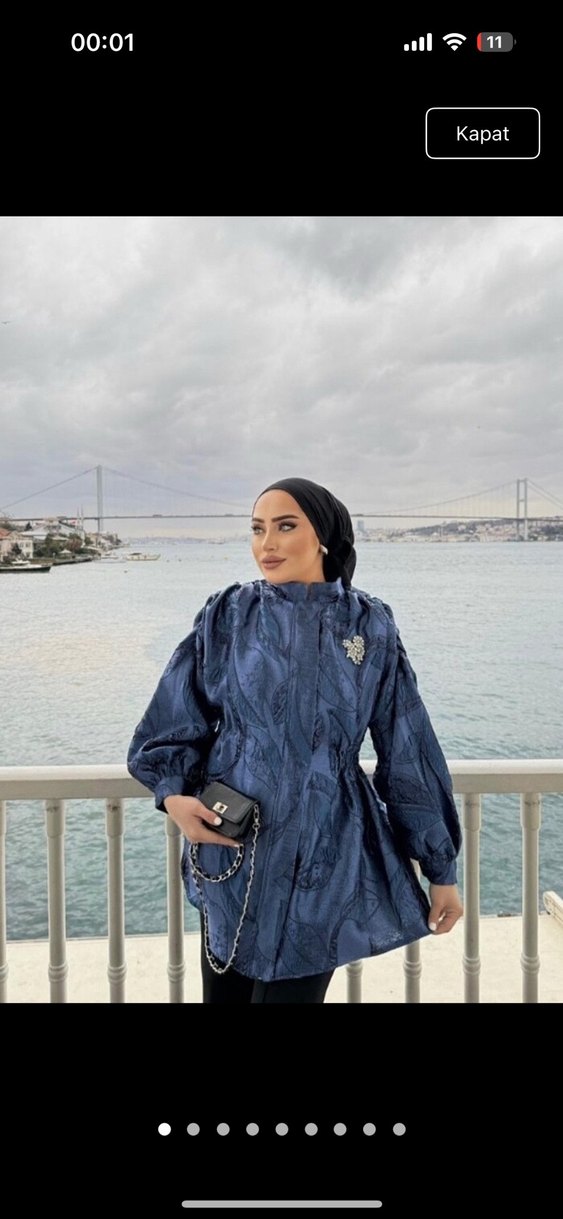 Lacivert uzun, bol kesim kot yağmurluk. Yüksek yakalı, uzun kollu, koyu batik desenli ve drapeli tasarıma sahiptir. Günlük kullanıma uygundur. ️