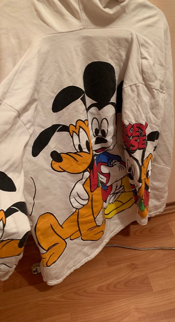 Yumuşak pamuk kumaştan yapılmış, mıckey mouse karakterlerinin baskılı olduğu beyaz ceket