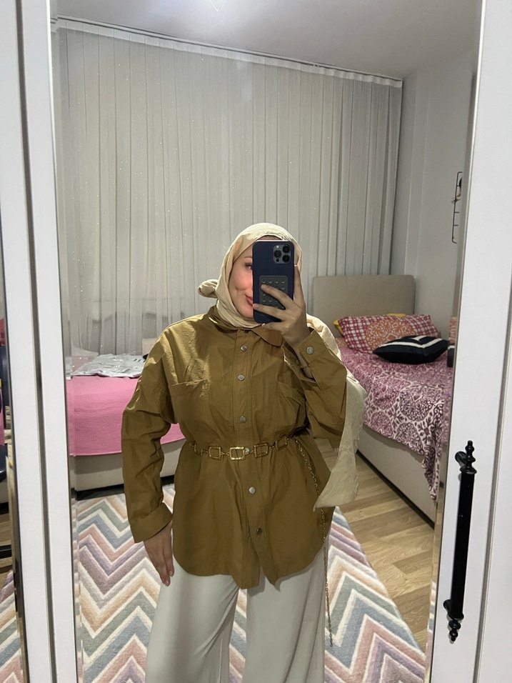 Hem ceket hem gömlek tarzında bir giysi. Yalnızca iki kez giydim. Camel Hardal gibi çok hoş bir rengi var. Hiç bir deformasyonu yoktur. S-M bedendir Marka temsilidir