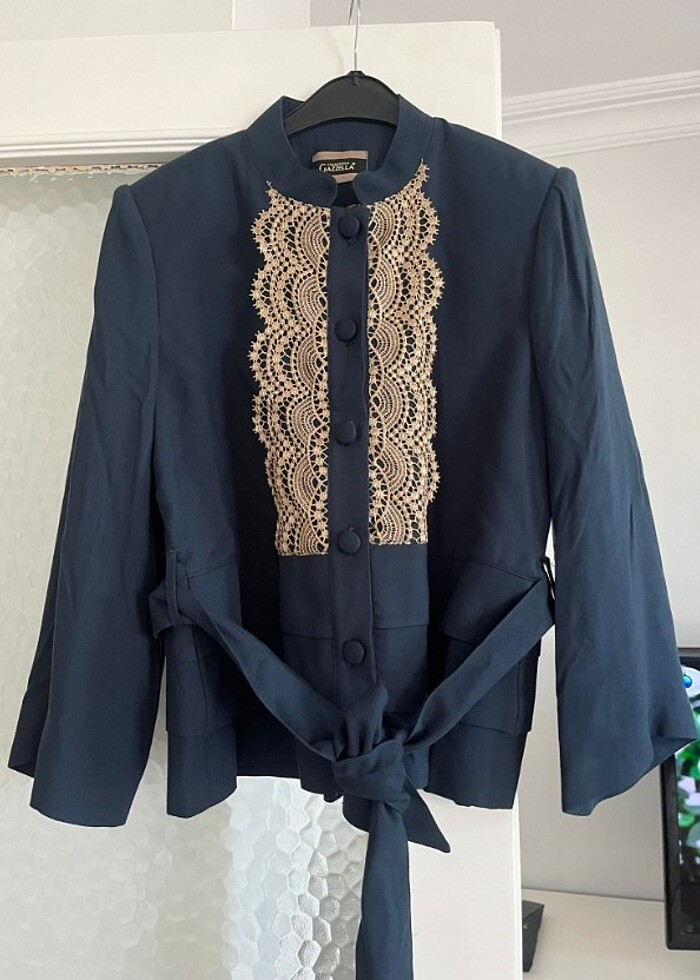 Bağlamalı ceket Rengi mavi /lacivert Fatihten bir butikten alındı Bedeni 42 Ketenimsi kumaş