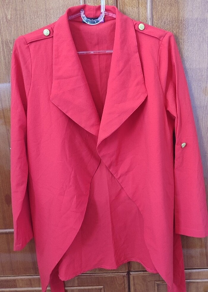 Ürünü 1 ya da 2 kez giydim. Kapsül dolaba geçiyorum. Giymediğimi fark ettim. Üstüne kilo da aldım .O yüzden ucuza satmak istiyorum. Aslında kırmızı ama fotoğraf çekerken rengi farklı çıktı. Hiçbir hasarı yok. Tertemiz