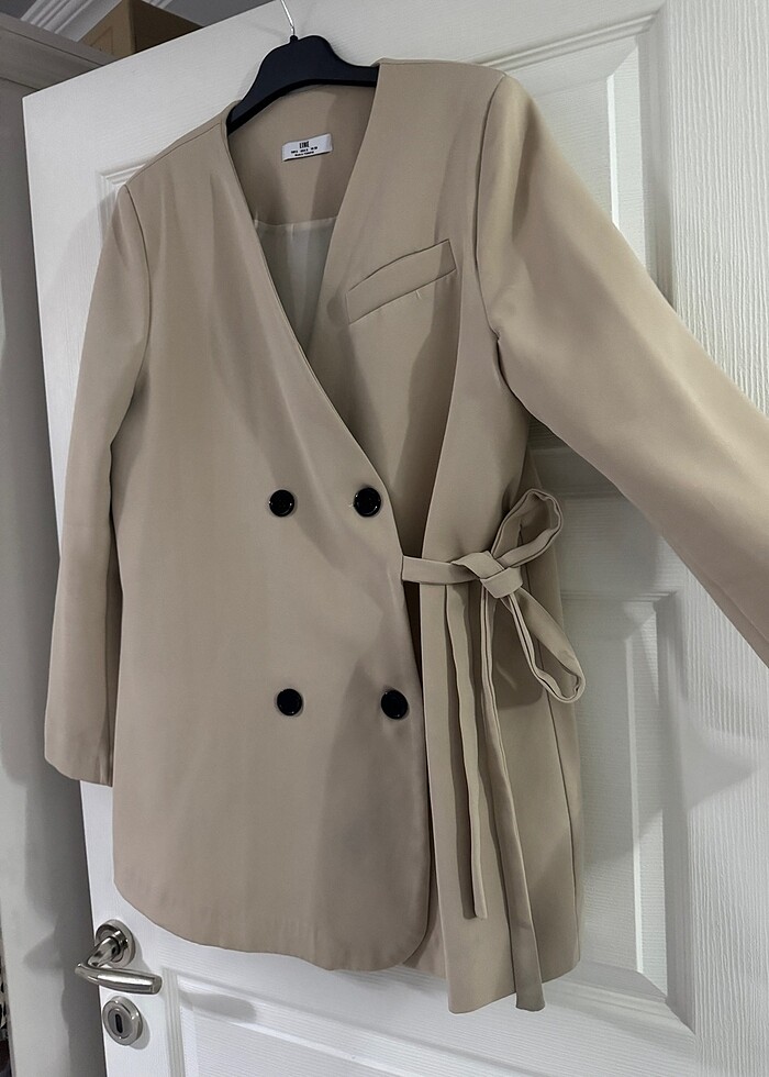 Bir kez giyildi yeni gibi temiz hiçbir yerinde bi sıkıntısı yok 38/40 beden boyu 80 cm