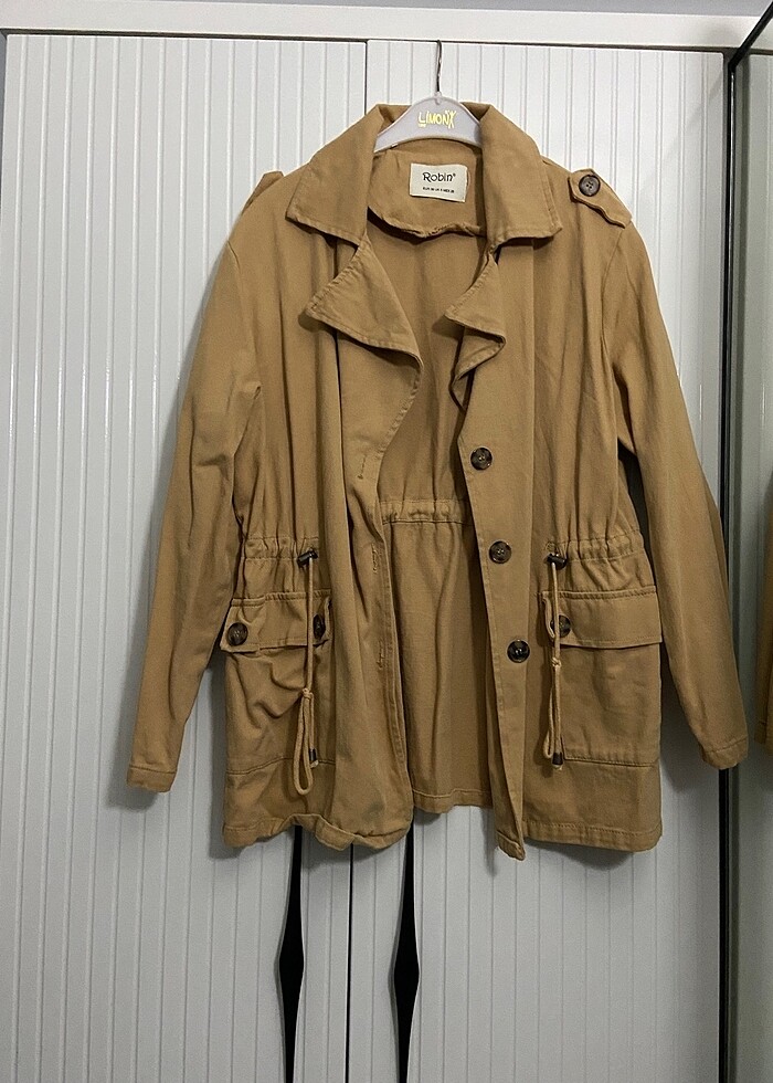 Düğmeli cepli beli lastikli oldukça kullanışlı bir ürün. Çok az giyildi. Kalıbı geniştir. 40 bedene kadar olur.