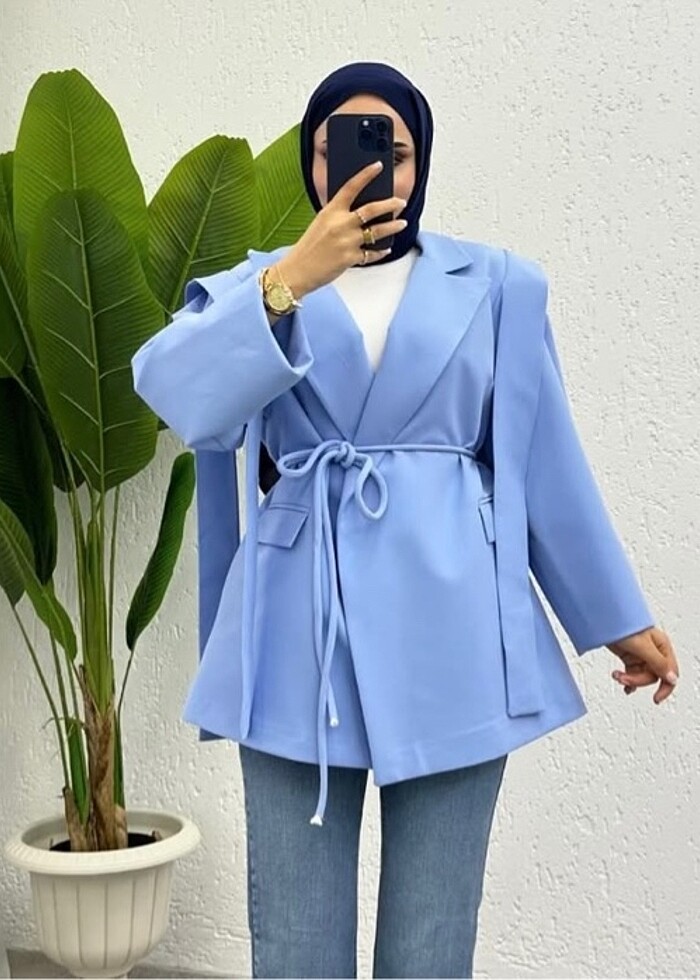 Bebe mavisi ceket.Hiçbir sorunu yok.36-38-40 bedenlere uygundur