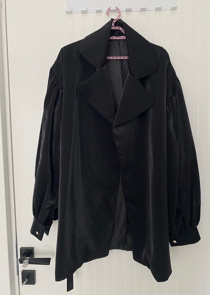 Mezuniyetim için almıştım. Tertemiz ürün.L/XI bedene rahatlıkla olur.Belinde kuşak detayı var. Bileklerinde inci düğme var.Çok çok şık bir ürün.Kilo verdiğim için büyük geliyor elden cikariyorum. Dolapta durdugundan biraz ütüye ihtiyacı var o kadar. Alıcısına şimdiden hayırlı olsun