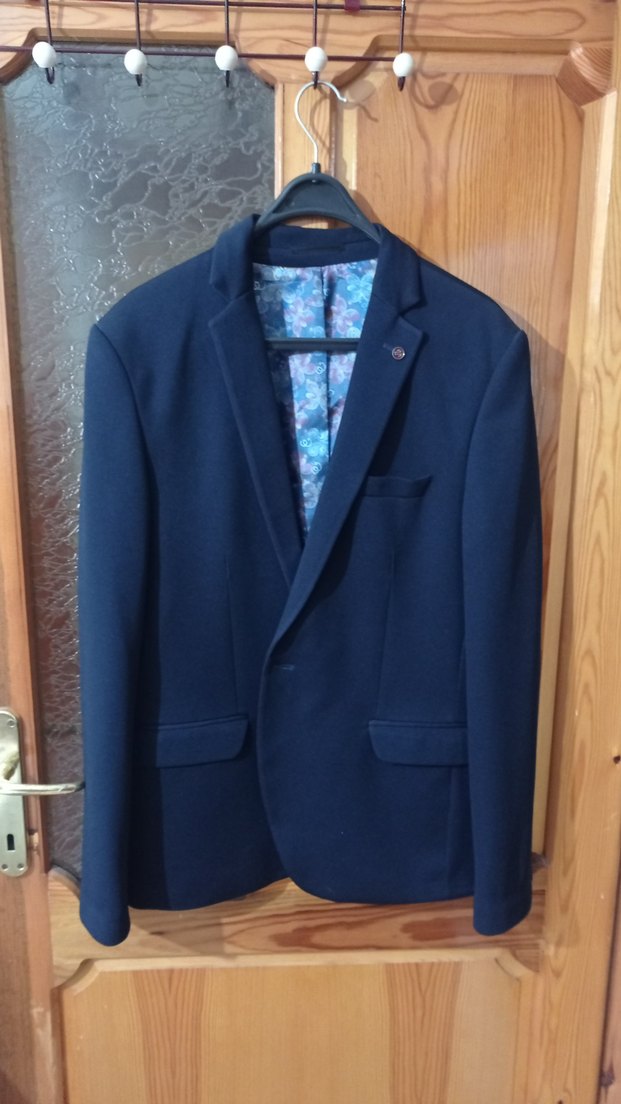 56/6 drop beden. Lacivert, düğmeli erkek blazer ceket. Ofis ve günlük sokak stiline uygun, normal boy ve regular fit. Uzun kollu, çentikli yaka ve çiçek desenli iç astar ile. 1 kez kullanıldı.