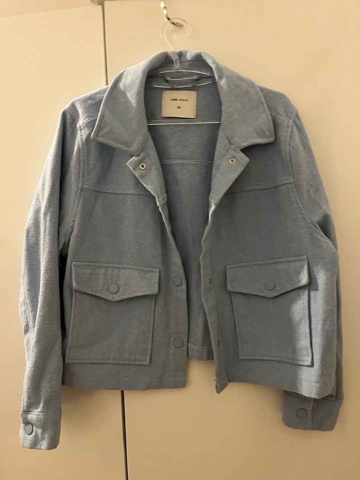 Sonbahar ilkbahar aylarında giyilebilecek bir cekettir bebek mavisi ve kotlarla beyaz eteklerle çok güzel kombinelinir
