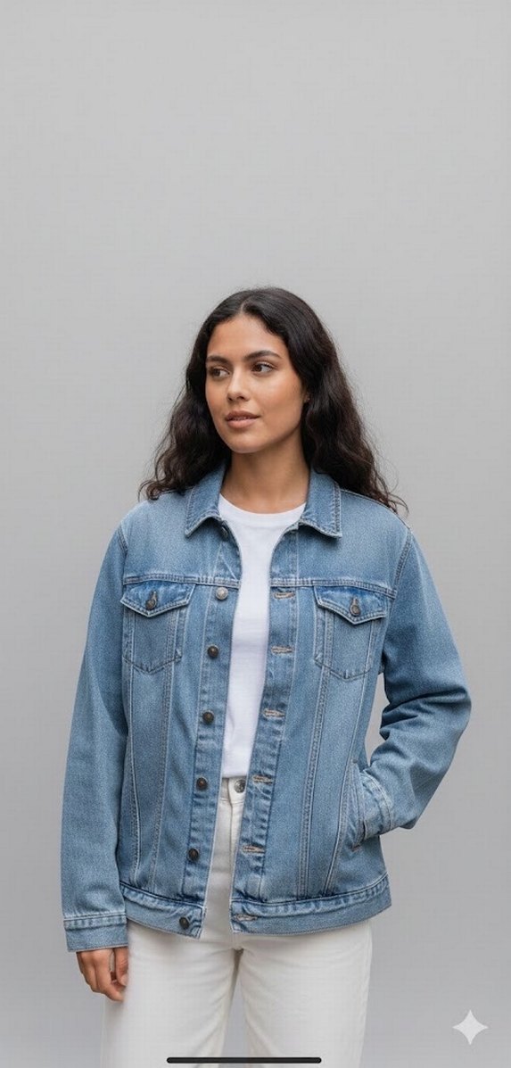 Düğmeli ve yakalı kot ceket kadın , uzun kollu ve normal boyda rahat kesimli herhangi bir deformesi bulunmuyor