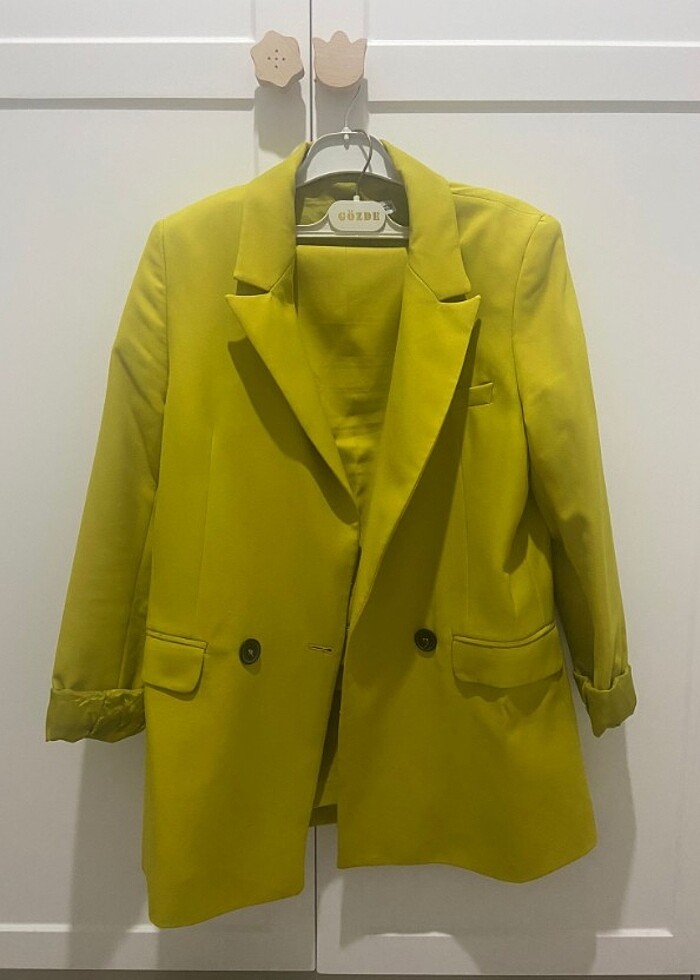 38 40 uyumlu Yağ yesili rengi bol paçalı ceket pantolon takim pazarlık olur