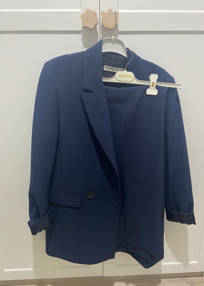 38 40 beden uyumlu bol paçalı lacivert ceket pantolon takim
