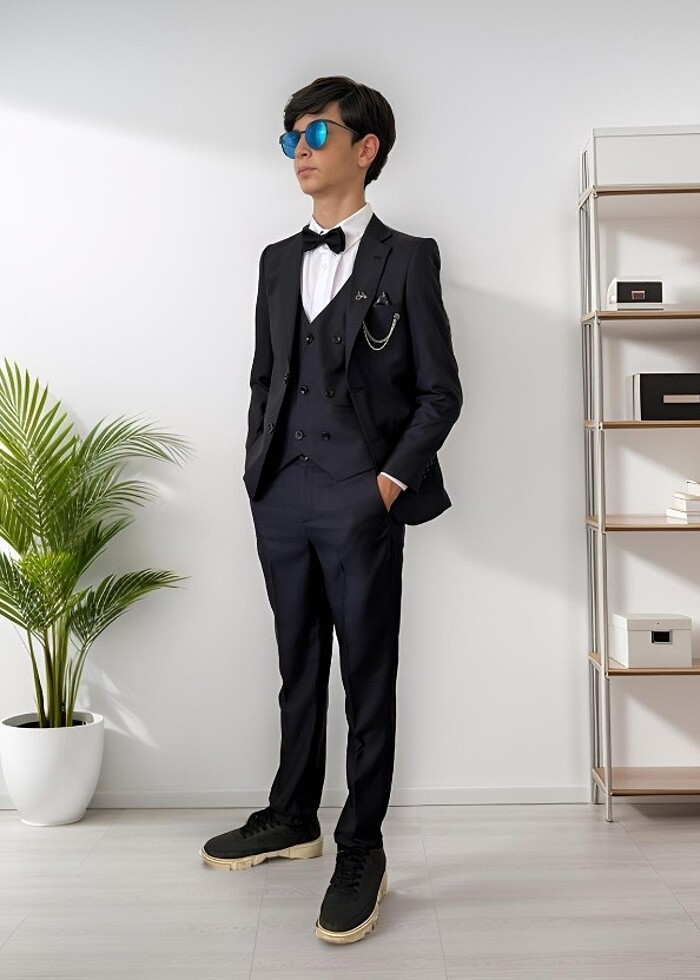 6 parça pantolon ceket yelek gömlek papyon ve yaka zinciri