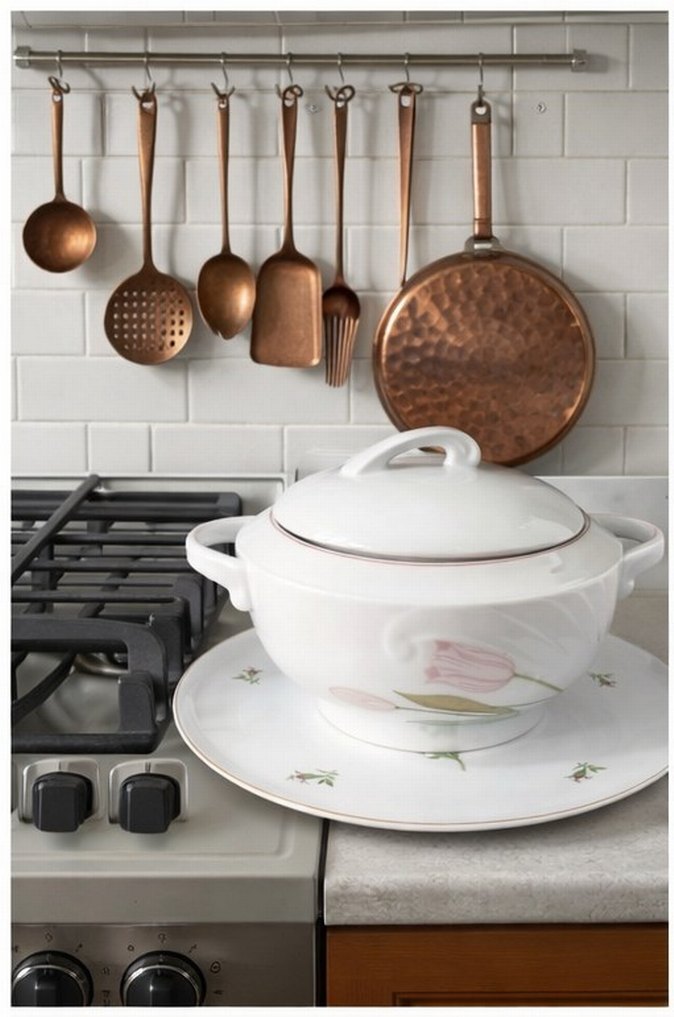 ROMANİYA, Pastel Çiçek Desenli Beyaz Porselen Çorba tenceresi